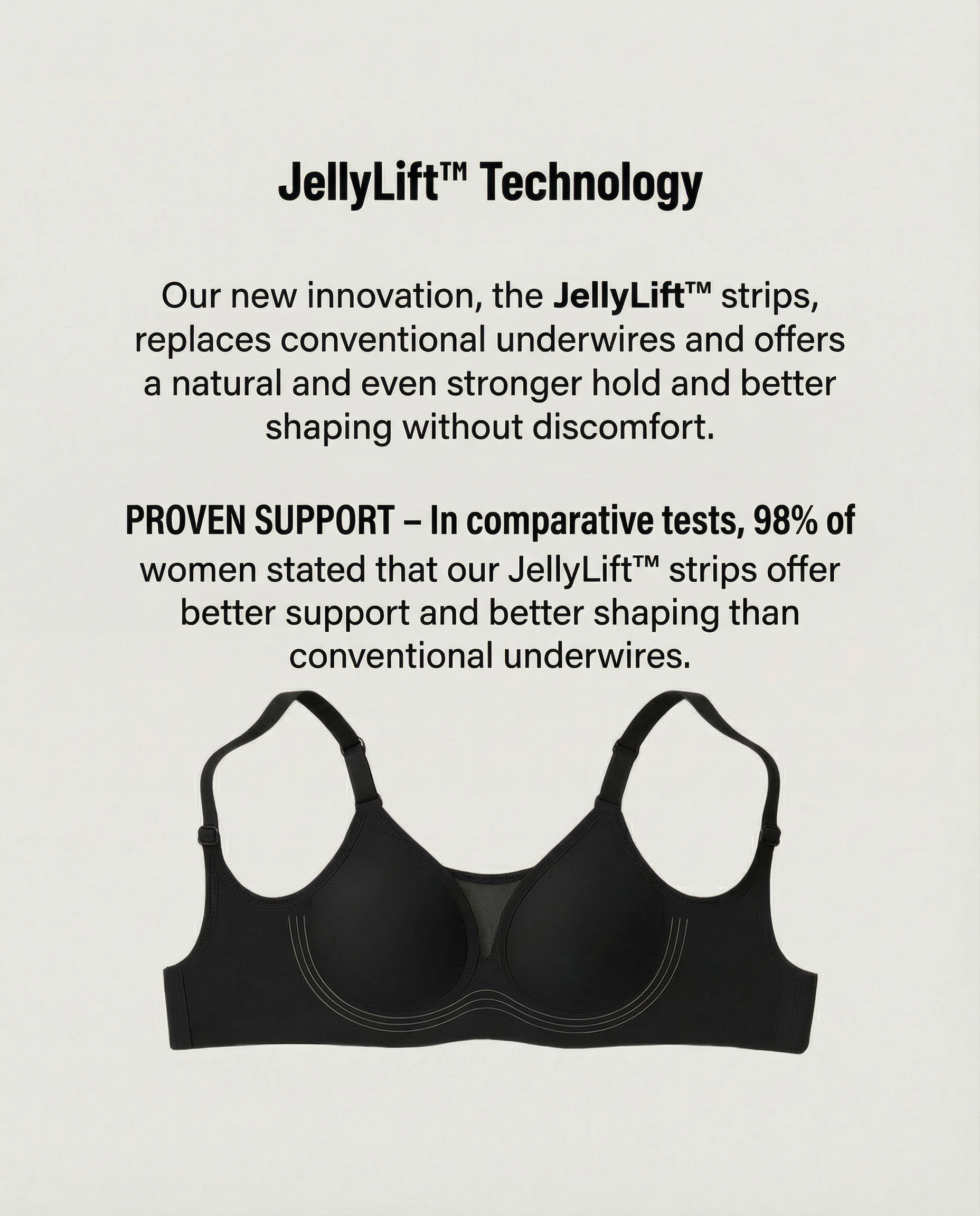 Unlike standard underwire bras that can dig in and restrict movement, JellyLift™ technology adapts to your body and moves with you.