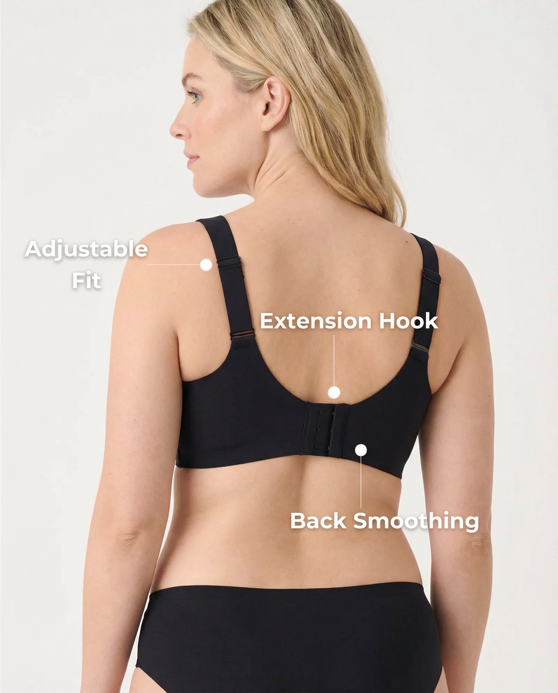Overly tight underbands and poorly designed backs can cause visible bulges and discomfort. This smooth back design lies flat, stays in place, and reduces pressure points—so the bra disappears under your clothes instead of working against your body.